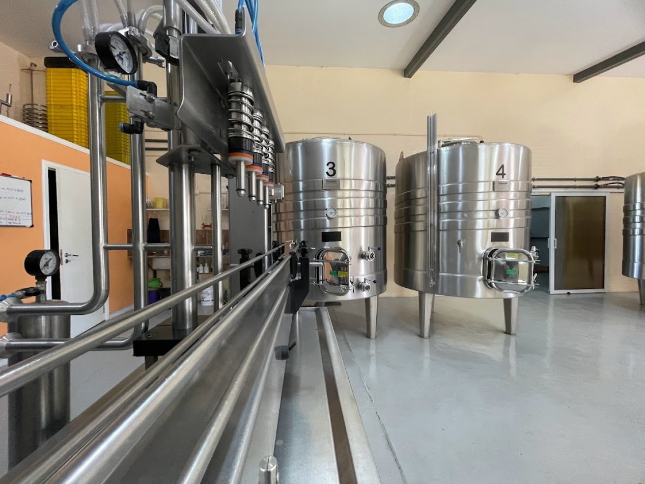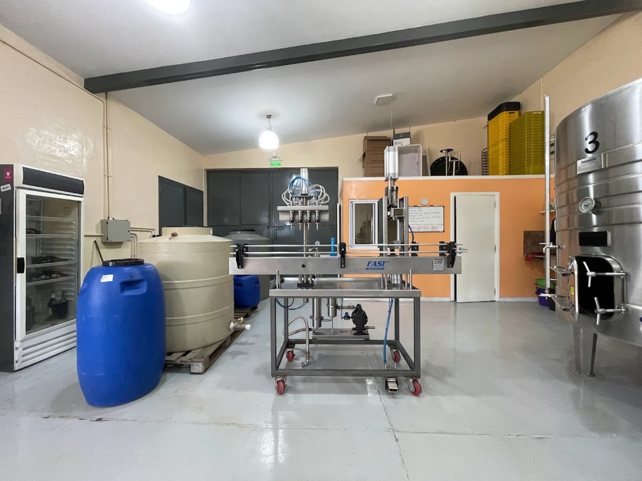 Posee 4 tanques de acero inoxidables y maquinarias de primera categoría. La capacidad máximum permitida por ser bodega artesanal es de 12’000 litros pero con posibilidad de cambiar a modo “bodega” sin restricciones de capacidad máximum de litros.