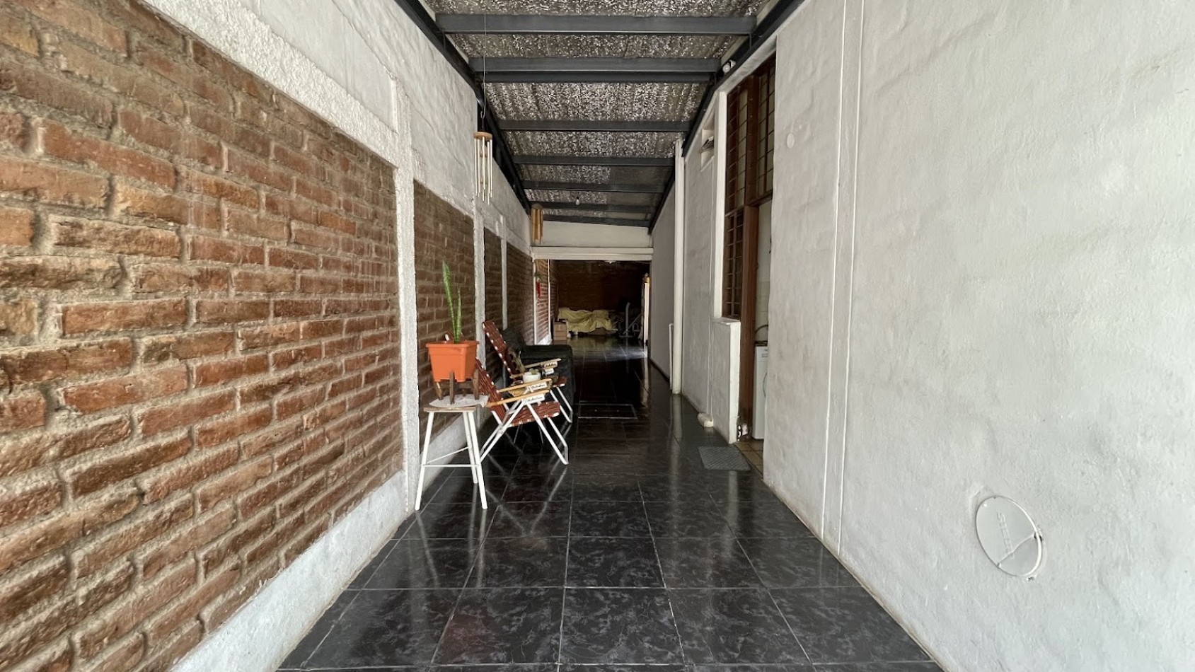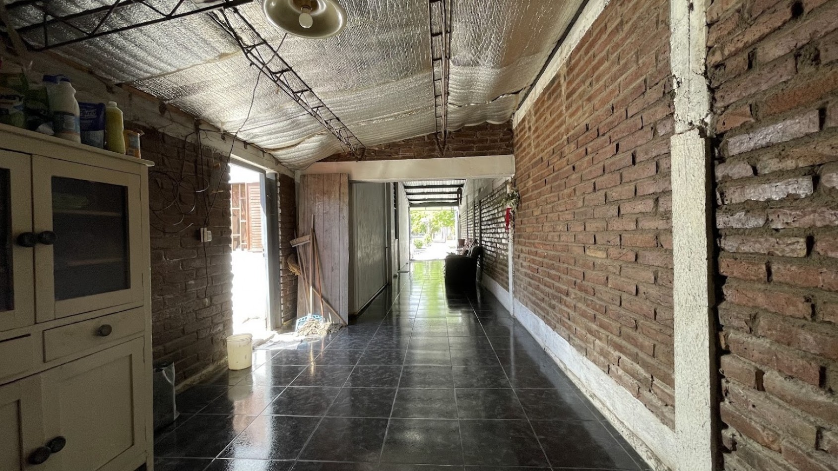 Los techos son de losas de hormigón con ladrillos huecos en la casa y chapas de zinc, estructura cochera y ampliación en el fondo.