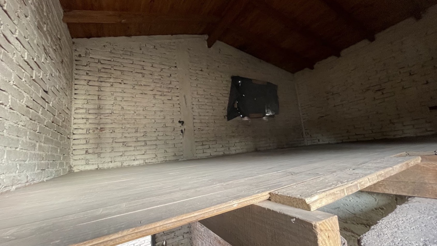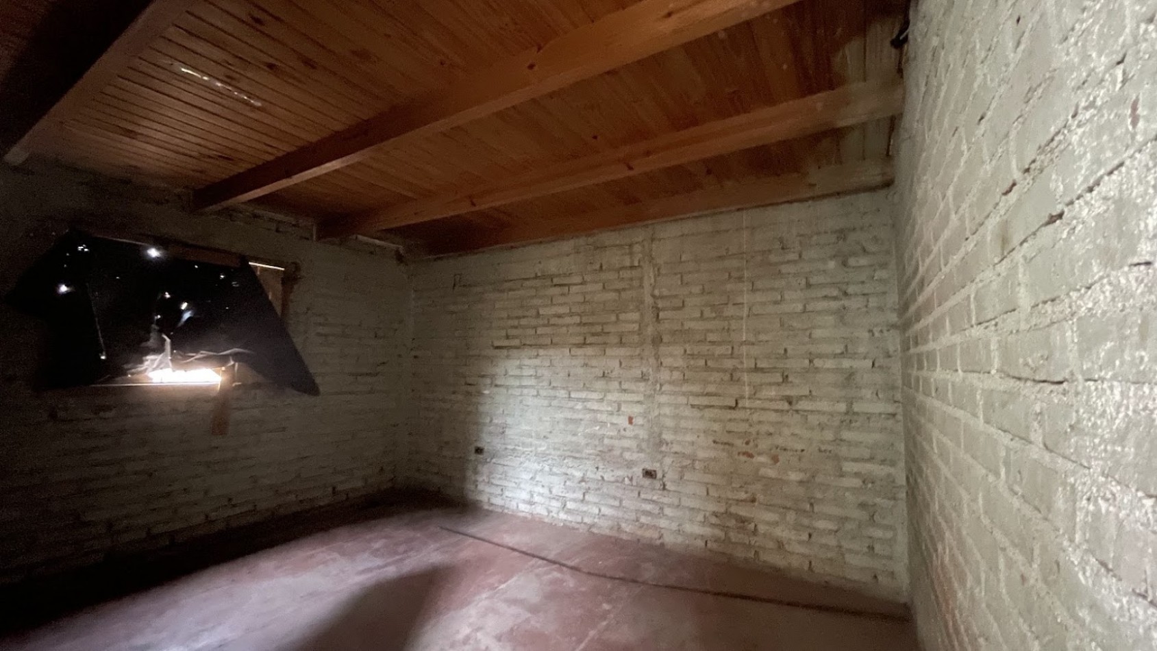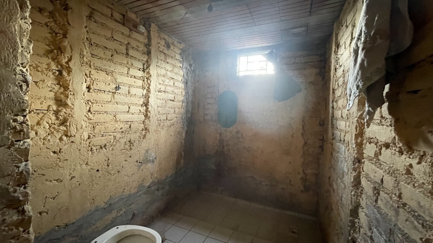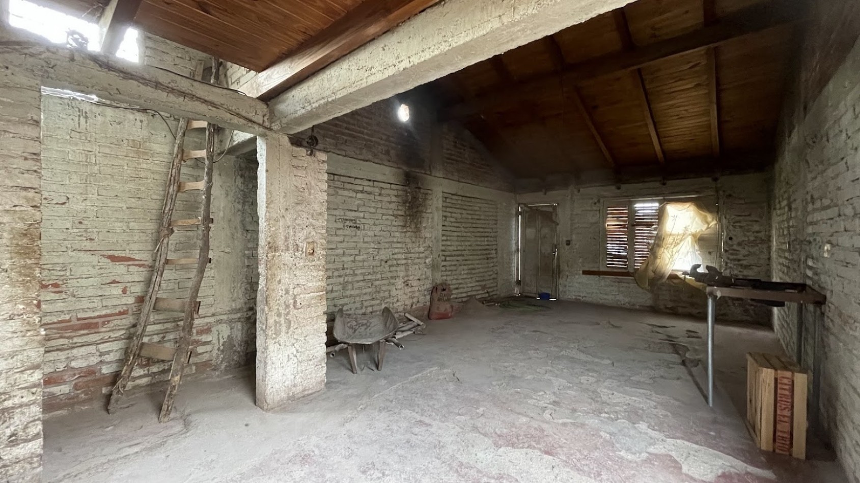 La casa construida en ladrillos cocidos y normas antisísmicas posee un avance de obra gruesa de aproximadamente un 60%. El techo es de chapas de zinc.