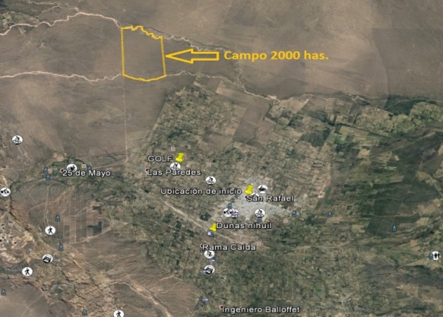 Campo de 2000 hectáreas ubicado a solo 12 kilómetros de la salida/entrada a San Rafael provincia de Mendoza y sobre ruta nacional 143.