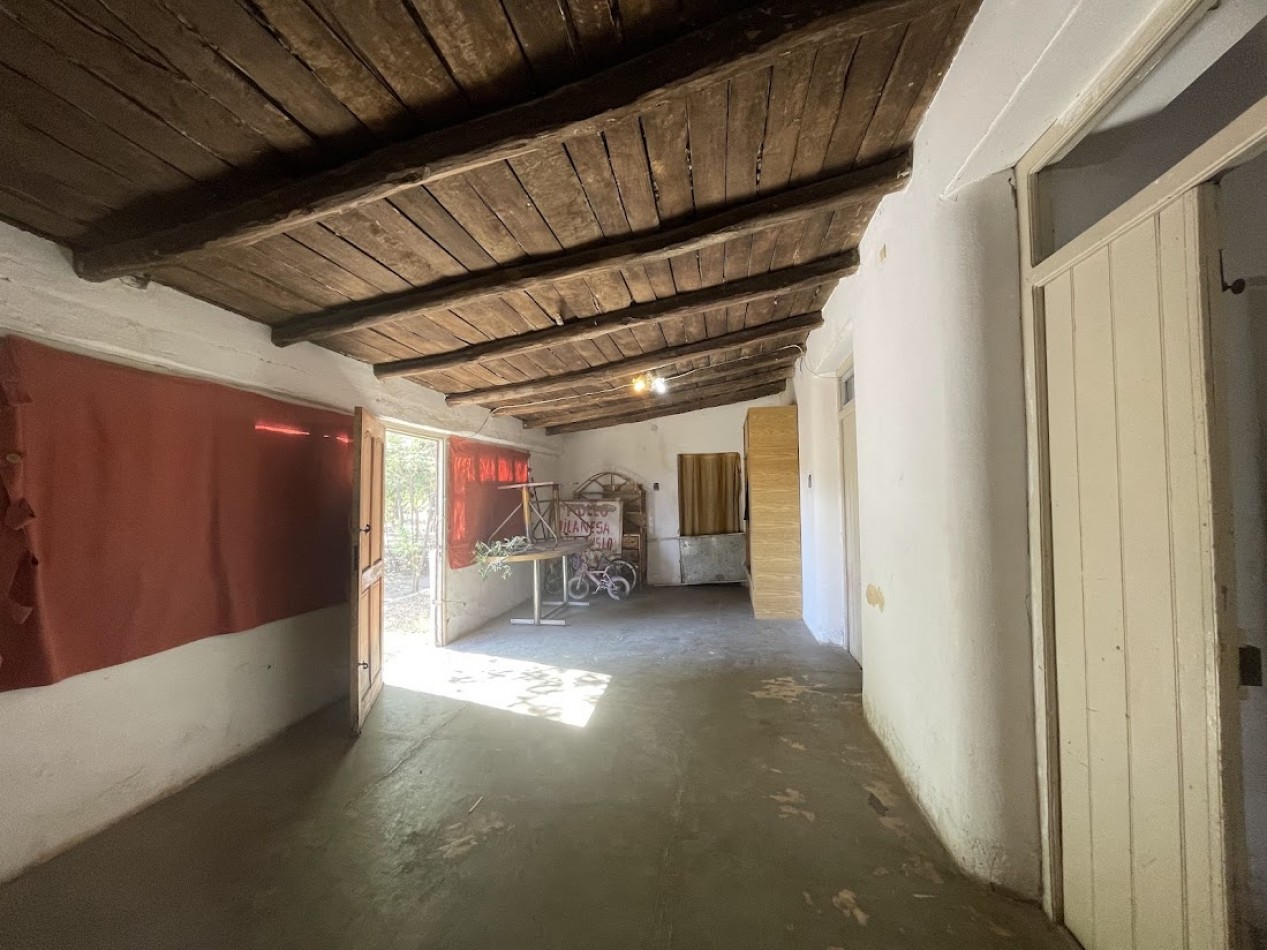 - A: Casa (134m²) con techo de zinc y anchas paredes de adobe en excelente estado de conservación. Actualmente esta casa se utiliza como pollería y verdulería. Cuenta también con una cocina, 3 habitaciones y un baño.