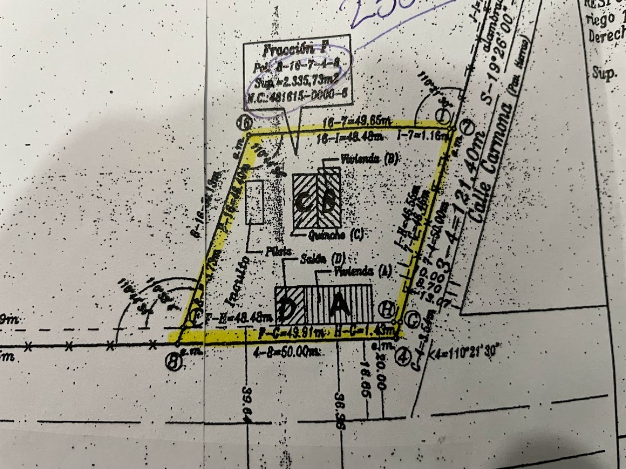 La propiedad cuenta con 4 diferentes construcciones de las cuales detallamos a continuación visible en foto adjunta del plano: