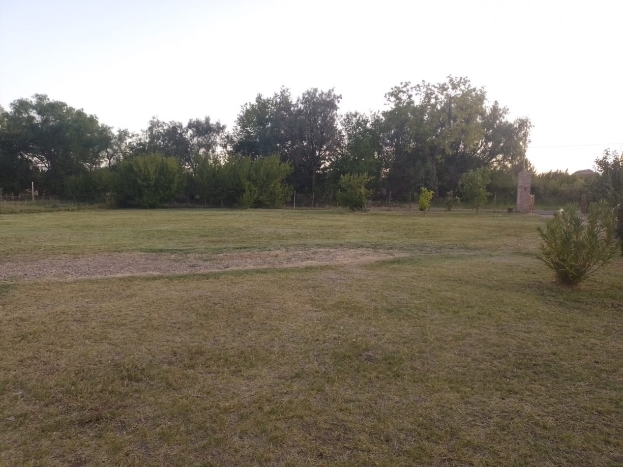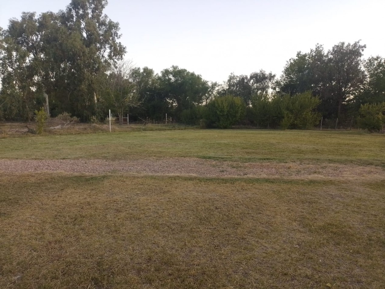 Terreno totalmente nivelado y parquizado con arboles y plantas decorativas.